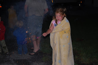 This year instead of going to watch the fireworks somewhere. We spent the night in Grandma & Grandpa's backyard. It was fun! We only bought a small kit from Uncle Jared. Then, we watched the fireworks others were doing in town (heck, we figure we'd let others spend the money) It was really relaxing and enjoyable.